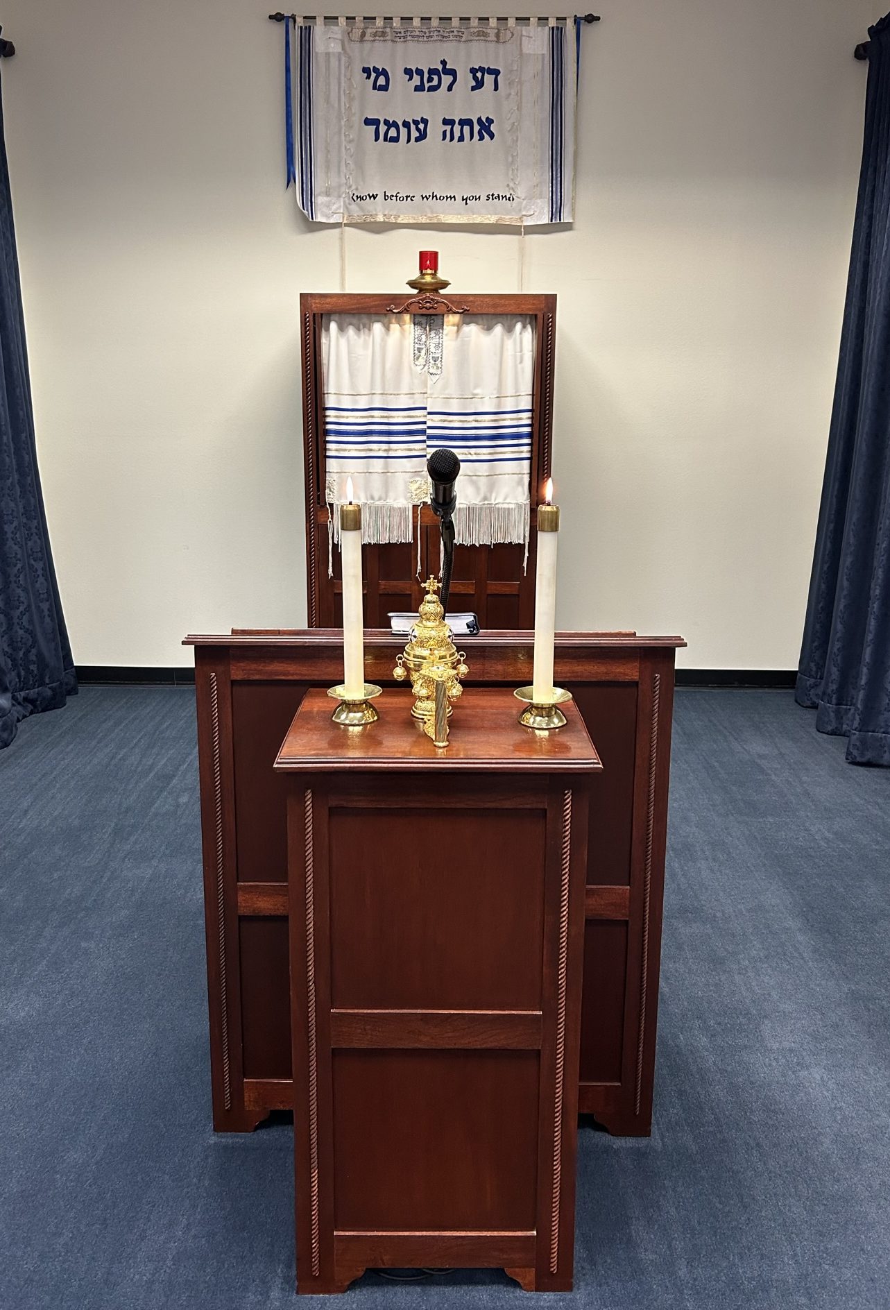 In the center-front entrance of the sanctuary you will notice an open pulpit. This pulpit faces our Ark and it is from here that congregants read scriptures, give testimonies, and lead hymns and songs of praise. It is done from this location specifically, so that those who read, pray, and testify are reminded that they are in the presence of God symbolically, and to remember before whom they stand.